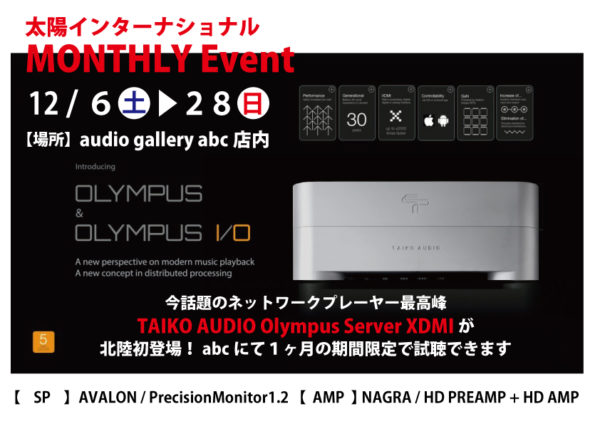 『TAIKO AUDIO Olympus Server XDMI 』が北陸初登場です